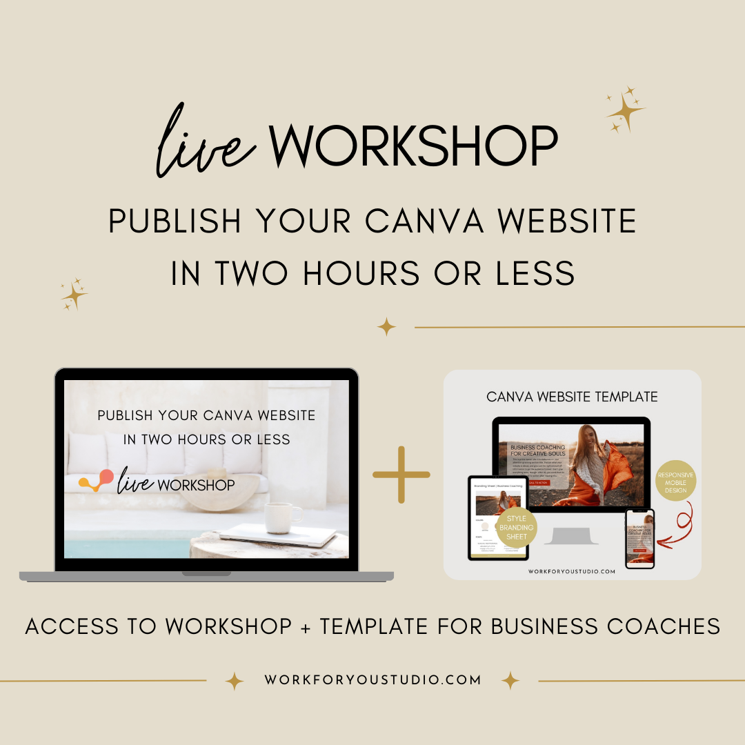 Unlike DIY templates that leave you guessing, I'll be right there with you during the workshop, walking you through every step of the process. You'll leave with a published website you're proud to share with clients β not just a template sitting in your downloads folder. Think of it as having a friend who knows Canva inside and out, helping you build your dream website!